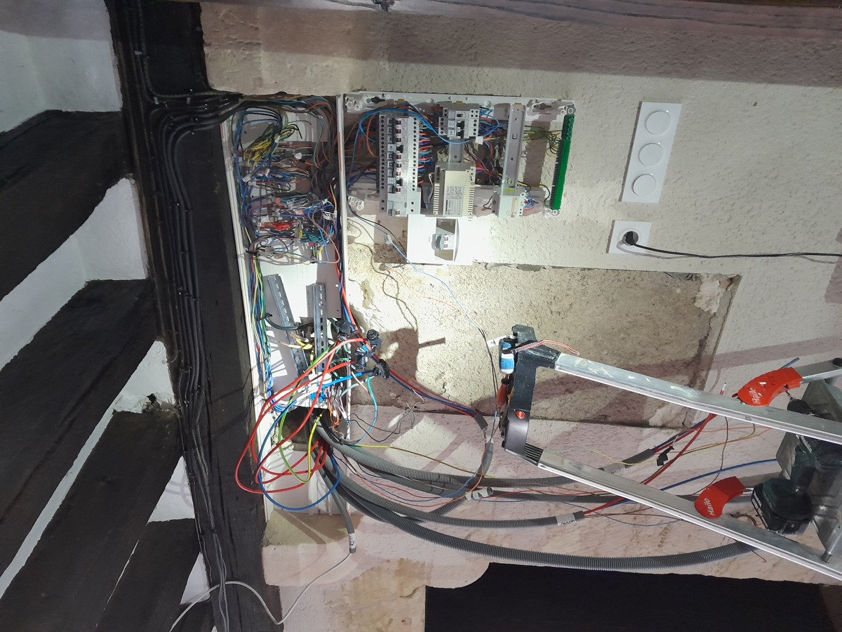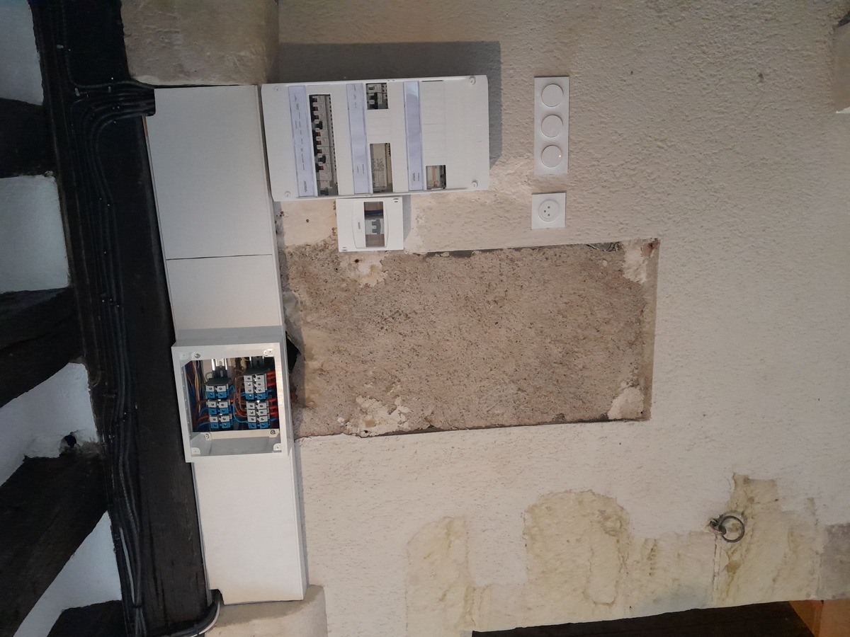 Le nouveau tableau électrique a été soigneusement intégré, avec un travail soigné sur les finitions et les gaines apparentes pour une installation à la fois propre et fonctionnelle.